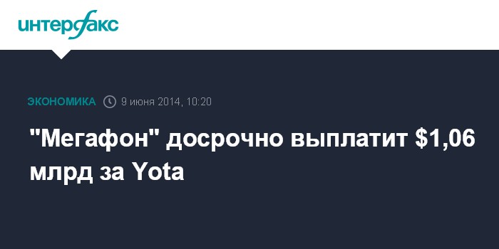 "Мегафон" досрочно выплатит $1,06 млрд за Yota