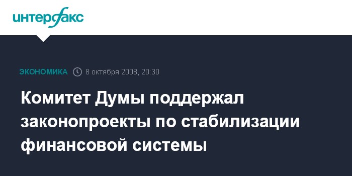 Москва. 8 октября. INTERFAX.RU - Комитет Госдумы по финансовому рынку на заседании в среду рекомендовал принять во втором и третьем чтениях законопроекты, направленные на стабилизацию финансовой системы РФ.