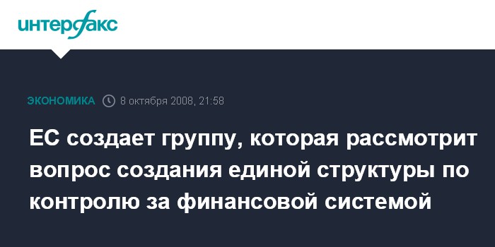 ЕС создает группу, которая рассмотрит вопрос создания единой структуры по контролю за финансовой системой