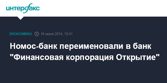 Номос-банк переименовали в банк "Финансовая корпорация Открытие"
