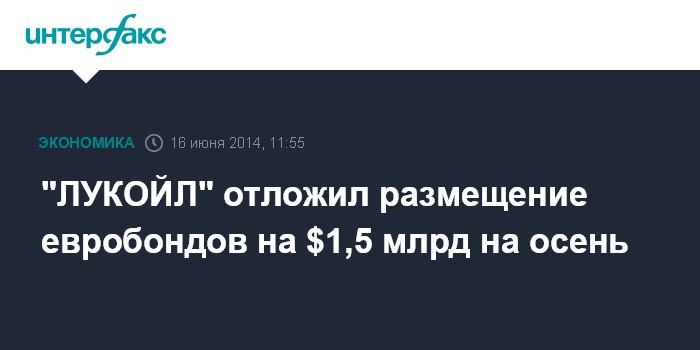 Москва. 16 июня. INTERFAX.RU - "ЛУКОЙЛ" отложил размещение евробондов на $1,5 млрд на осень, сообщил Агентству нефтяной информации (АНИ) Вагит Алекперов в рамках 21 Мирового нефтяного конгресса.