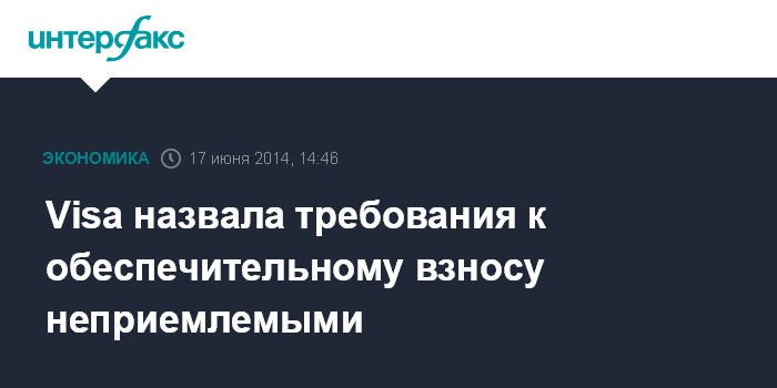Москва. 17 июня. INTERFAX.RU - Международная платежная система Visa по-прежнему считает нынешние требования к формированию обеспечительного взноса неприемлемыми, говорится в сообщении пресс-службы Visa.