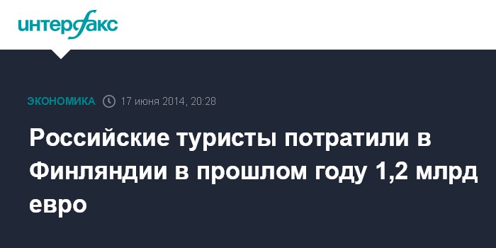 Москва. 17 июня. INTERFAX.RU - Туристы из России потратили в Финляндии в 2013 году 1,2 млрд евро, сообщил журналистам исполнительный директор Федерации коммерции Суоми Юхани Пеккала.