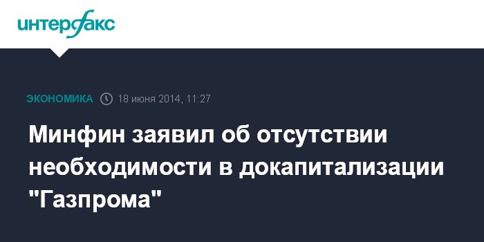 Москва. 18 июня. INTERFAX.RU - Минфин в настоящее время не видит необходимости в докапитализации "Газпрома" с участием средств государства, но будет мониторить ситуацию, сообщил журналистам министр финансов РФ Антон Силуанов.