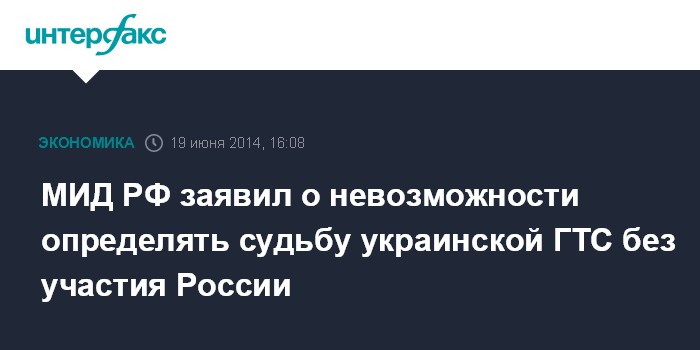 Москва. 19 июня. INTERFAX.RU - Судьба украинской газотранспортной системы не может решаться без российского участия, заявил официальный представитель МИД РФ Александр Лукашевич.
