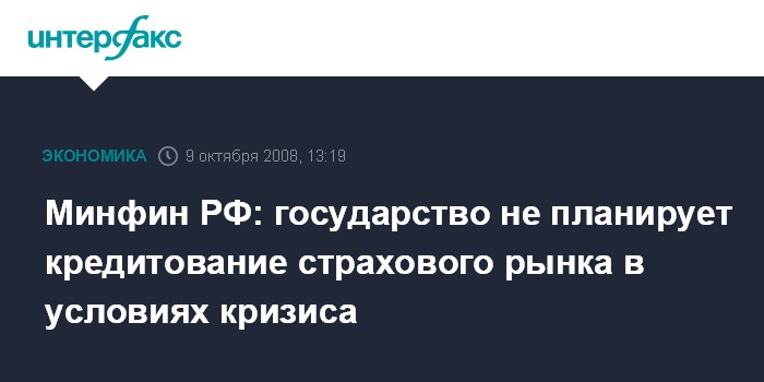 Минфин РФ: государство не планирует кредитование страхового рынка в условиях кризиса