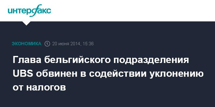 Москва. 20 июня. INTERFAX.RU - Генеральный директор бельгийского подразделения швейцарского банка UBS Марсель Брювилер назван в числе обвиняемых по делу о содействии состоятельным гражданам страны в уклонении от уплаты налогов, сообщает агентство Bloomberg.