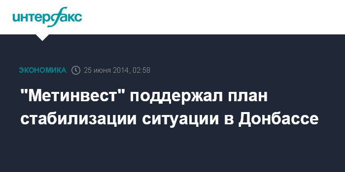 Москва. 25 июня. INTERFAX.RU - Генеральные директоры металлургических комбинатов Мариуполя "Азовсталь" и ММК им. Ильича поддержали план президента Украины Петра Порошенко по мирном урегулированию в Донбассе.