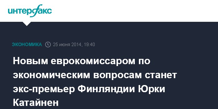Москва. 25 июня. INTERFAX.RU - Ушедший с поста премьер-министра Финляндии Юрки Катайнен назначен новым комиссаром Евросоюза по экономическим и монетарным вопросам, заявил в среду председатель Европейской комиссии Жозе Мануэл Баррозу, слова которого передает агентство Bloomberg.