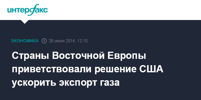 Москва. 26 июня. INTERFAX.RU - Представители правительств ряда восточноевропейских государств высоко оценили усилия Конгресса США, направленные на ускорение перехода к экспорту американского газа, пишет Financial Times. Как отмечает издание, действия России вынуждают европейских потребителей газа искать альтернативные поставки.