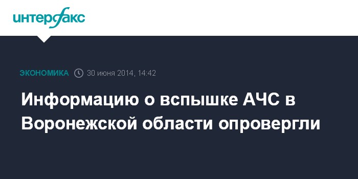 Москва. 30 июня. INTERFAX.RU - Информация о вспышке африканской чумы свиней (АЧС) в Воронежской области не соответствует действительности.