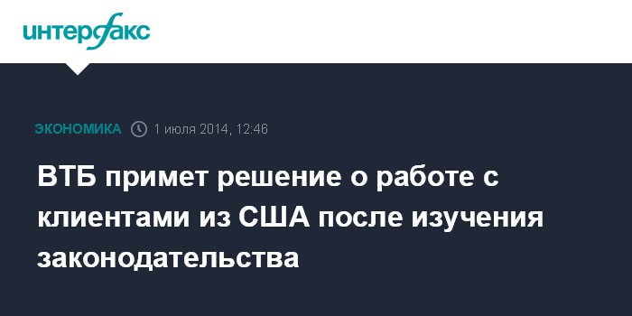 В начале июня текущего года пресс-служба ВТБ сообщила, что руководство ВТБ "дало распоряжение подразделениям группы постепенно отказаться от обслуживания клиентов-американских налогоплательщиков". "Речь идет как о физических, так и о юридических лицах", - отмечалось в сообщении.