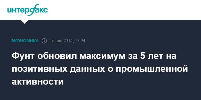 Москва. 1 июля. INTERFAX.RU - Фунт стерлингов в ходе торгов во вторник обновил максимум за более чем пять лет благодаря неожиданному усилению роста деловой активности в перерабатывающей промышленности Великобритании, сообщает агентство Bloomberg.