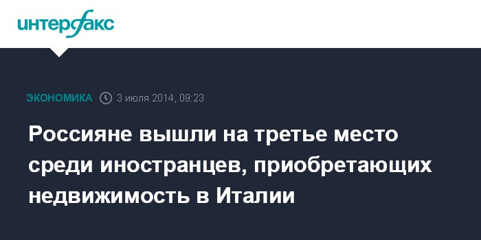 "Количество случаев приобретения россиянами недвижимости в Италии за последние годы значительно выросло. Достаточно подумать о том, что в 2005 году россияне составляли 2% от числа иностранцев, которые приобретали недвижимость в Италии, а в 2013 году этот показатель составил 13%, и россияне вышли на третье место после немцев и англичан", - сказал посол.