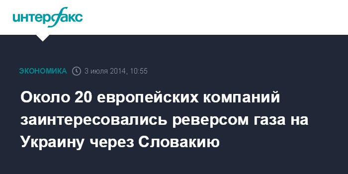 Около 20 европейских компаний заинтересовались реверсом газа на Украину через Словакию
