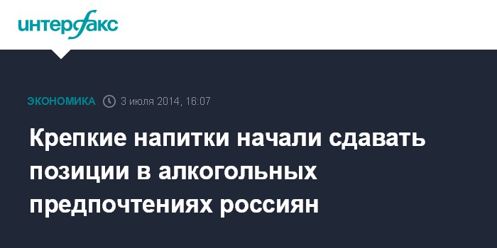 Москва. 3 июля. INTERFAX.RU - Крепкие напитки постепенно сдают позиции в алкогольных предпочтениях россиян.