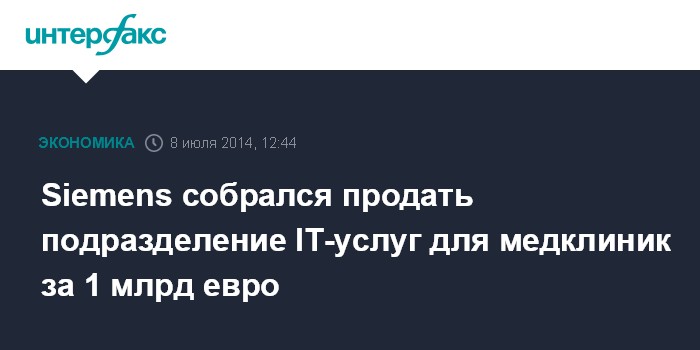 Москва. 8 июля. INTERFAX.RU - Германский концерн Siemens AG рассматривает возможность продажи подразделения, предоставляющего IT-услуги медицинским клиникам, сообщает агентство Bloomberg со ссылкой на осведомленные источники.