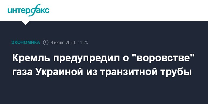 Кремль предупредил о "воровстве" газа Украиной из транзитной трубы