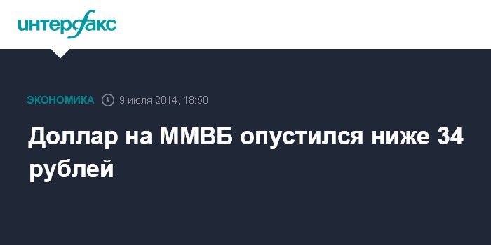 Москва. 9 июля. INTERFAX.RU - Доллар США вечером в среду опустился на торгах Московской биржи ниже отметки 34 рублей на фоне отсутствия нового негатива по Украине, а также повышенного интереса мировых инвесторов к развивающимся рынкам.