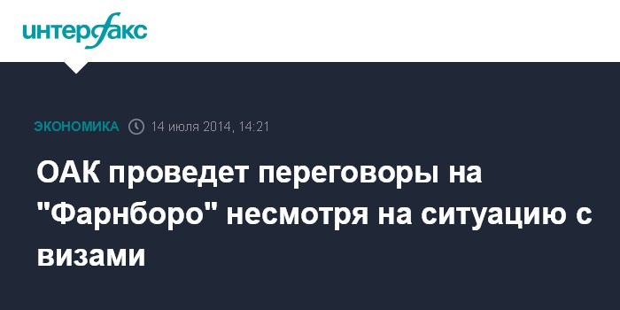 ОАК проведет переговоры на "Фарнборо" несмотря на ситуацию с визами