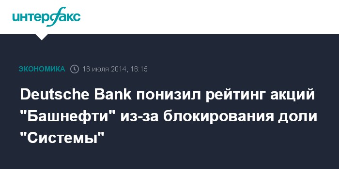 Deutsche Bank понизил рейтинг акций "Башнефти" из-за блокирования доли "Системы"