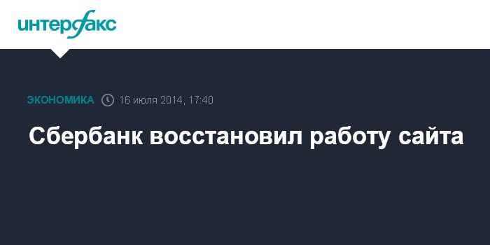 Москва. 16 июля. INTERFAX.RU - Сбербанк России восстановил работу своего сайта, сообщили агентству "Интерфакс" в пресс-службе кредитной организации.