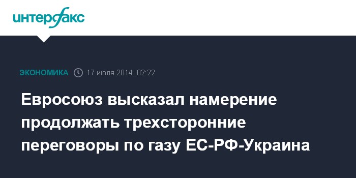 Москва. 17 июля. INTERFAX.RU - Европейский Совет в постановлении, принятом по итогам саммита 17 июля, подчеркнул важность трехсторонних переговоров между Евросоюзом, Россией и Украиной по газоснабжению.