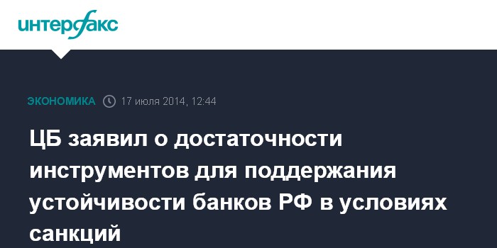 Москва. 17 июля. INTERFAX.RU - У Банка России достаточно инструментов для поддержания устойчивости российских банков, подпавших под санкции, заявил зампред ЦБ РФ Михаил Сухов журналистам на Санкт-Петербургской международной банковской конференции в четверг.