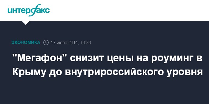 Москва. 17 июля. INTERFAX.RU - "Мегафон" до конца лета планирует снизить цены на роуминг в Крыму до уровня внутрироссийских роуминговых тарифов, сообщил директор по массовому рынку "Мегафона" Михаил Дубин журналистам в четверг.