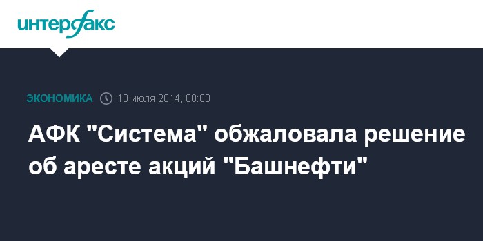 Ранее АФК "Система" сообщила, что получила уведомление от ОАО "Реестр" о запрете на списание с лицевого счета компании акций "Башнефти". "Указанный запрет накладывает ограничение на совершение компанией сделок с акциями "Башнефти", однако не ограничивает ни в коей мере прав компании на участие в голосовании и получение дивидендов, а равно иных прав, связанных с владением акциями", - говорилось в сообщении АФК.