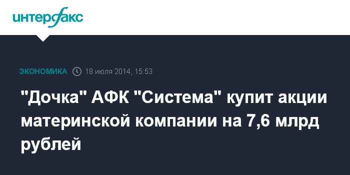 "Дочка" АФК "Система" купит акции материнской компании на 7,6 млрд рублей