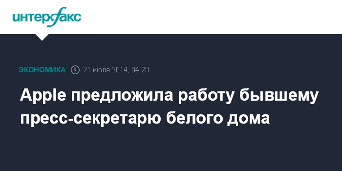 Москва. 21 июля. INTERFAX.RU - Компания Apple предложила бывшему пресс-секретарю белого дома Джею Карни работу в пиар-отделе, сообщило агентство Bloomberg со ссылкой на друга Карни.