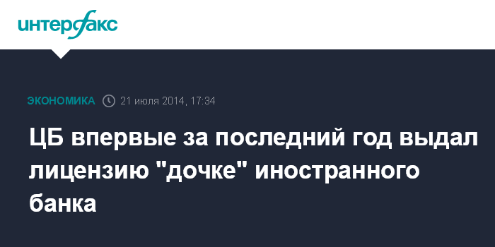 Данные на сайте ЦБ свидетельствуют о том, что в последний раз он выдавал лицензию "дочке" иностранных компаний в апреле прошлого года. Тогда право работать в стране получил Икано банк - совместное предприятие международной группы "Икано", принадлежащей семье основателя торговой сети IKEA, и Кредит Европа банка, имеющего турецких акционеров. Месяцем ранее банковскую лицензию получила российская "дочка" второго по величине банка Китая China Construction Bank.