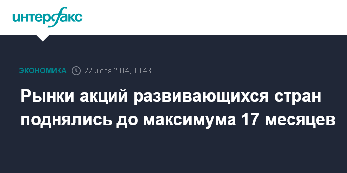 Рынки акций развивающихся стран поднялись до максимума 17 месяцев