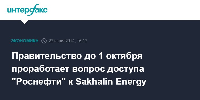 Правительство до 1 октября проработает вопрос доступа "Роснефти" к Sakhalin Energy