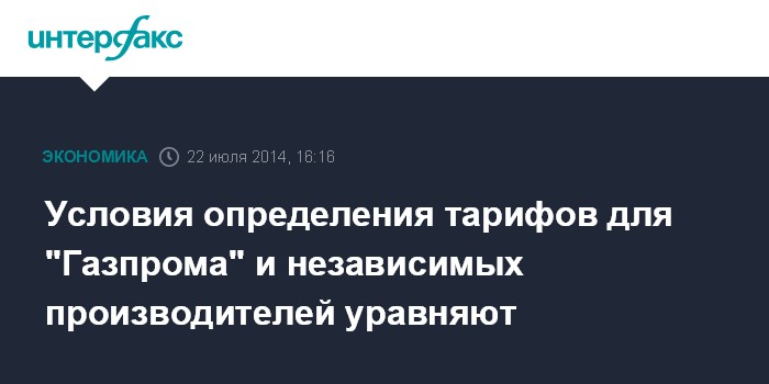 Условия определения тарифов для "Газпрома" и независимых производителей уравняют