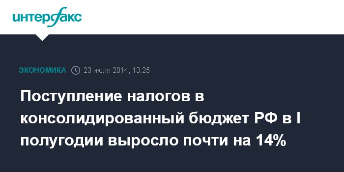 Поступление налогов в консолидированный бюджет РФ в I полугодии выросло почти на 14%