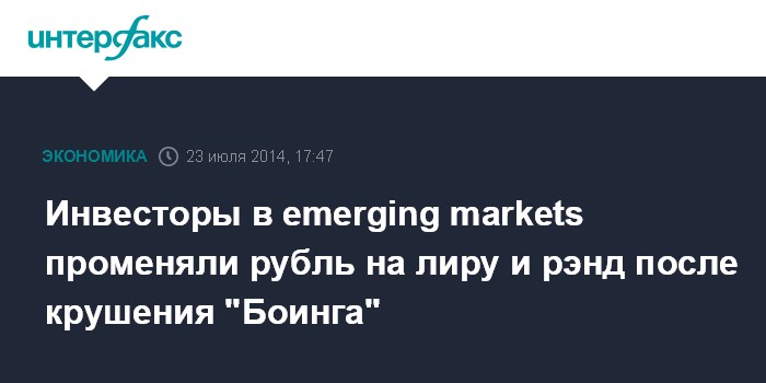 Инвесторы в emerging markets променяли рубль на лиру и рэнд после крушения "Боинга"