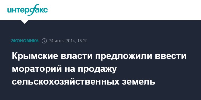 Москва. 24 июля. INTERFAX.RU – Руководство Крыма предлагает ввести мораторий на продажу земли сельскохозяйственного назначения на территории полуострова "минимум на три года", сообщил вице-премьер республики Николай Янаки.