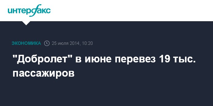 Москва. 25 июля. INTERFAX.RU - "Добролет" ("дочка" "Аэрофлота") в июне перевез 19,1 тыс. пассажиров, говорится в сообщении "Аэрофлота".