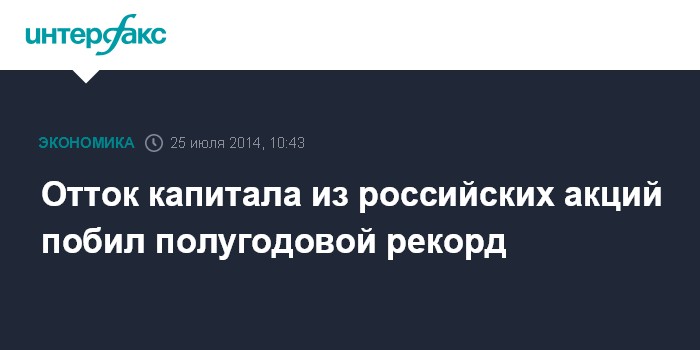 Москва. 25 июля. INTERFAX.RU – Отток капитала из фондов, ориентированных на акции России, с 17 по 23 июля 2014 года продолжился пятую неделю подряд и составил порядка $172 миллионов. Об этом свидетельствуют данные Emerging Portfolio Fund Research.