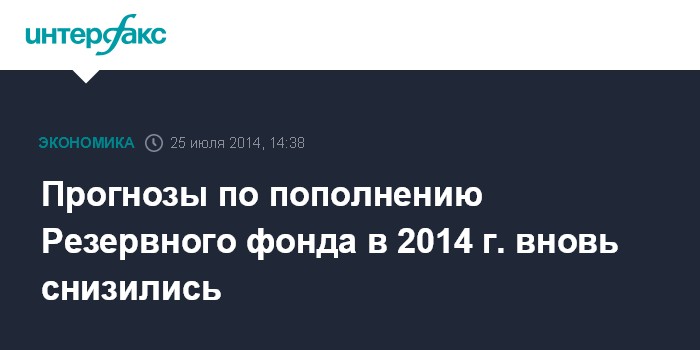 Прогнозы по пополнению Резервного фонда в 2014 г. вновь снизились