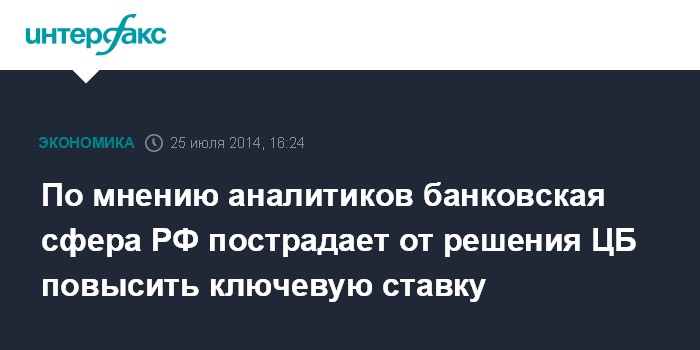 Москва. 25 июля. INTERFAX.RU - Решение Банка России повысить ключевую процентную ставку до 8,0% годовых может негативно отразиться на банковской системе и темпах роста экономики, полагает ряд аналитиков, опрошенных агентством "Интерфакс".