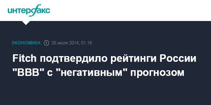 Москва. 26 июля. INTERFAX.RU - Международное рейтинговое агентство Fitch в ночь на субботу подтвердило долгосрочные рейтинги дефолта эмитента (РДЭ) Российской Федерации в иностранной и национальной валюте на уровне "BBB".