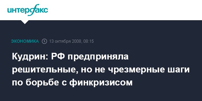 Кудрин: РФ предприняла решительные, но не чрезмерные шаги по борьбе с финкризисом