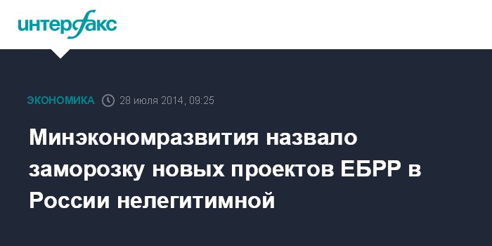 Москва. 28 июля. INTERFAX.RU - Глава Минэкономразвития Алексей Улюкаев "поставил ряд вопросов в отношении легитимности принятого решения" совета директоров Европейского банка реконструкции и развития временно приостановить финансирование новых проектов в России, сообщило ведомство по итогам встречи министра с президентом ЕБРР Сумой Чакрабарти.