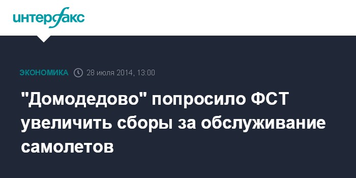 Москва. 28 июля. INTERFAX.RU – Аэропорт "Домодедово" обратился в Федеральную службу по тарифам с просьбой повысить аэропортовые сборы на 8,1%, следует из материалов ФСТ.