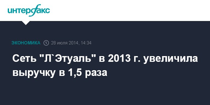 Сеть "Л`Этуаль" в 2013 г. увеличила выручку в 1,5 раза