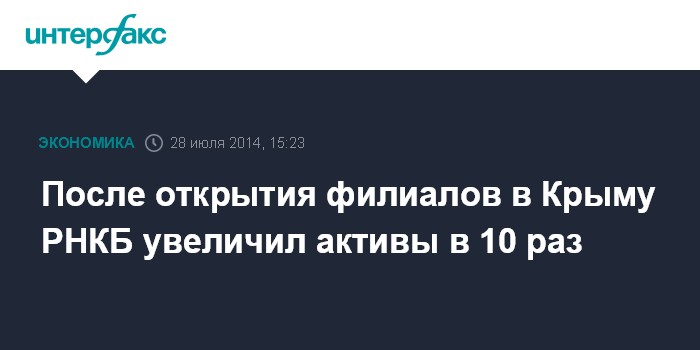 После открытия филиалов в Крыму РНКБ увеличил активы в 10 раз