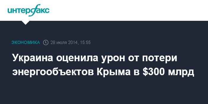 Москва. 28 июля. INTERFAX.RU - Украина оценила урон от потери энергообъектов Крыма в $300 млрд